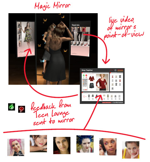 Кристофер Энрайт, главный технолог студии цифрового дизайна IconNicholson, считает, что если разместить такие зеркала в примерочных, женщины смогут делать покупки, дистанционно советуясь с мужем или подругами.