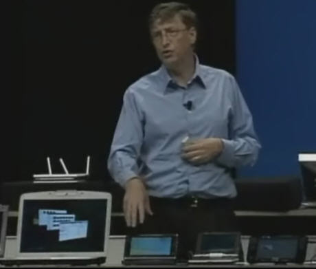 Билл Гейтс демонстрирует мобильные ПК — слева направо: Acer, HTC, Fujitsu и Samsung