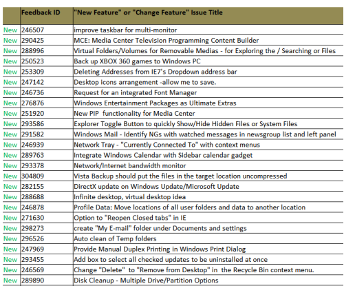 Веб-сайт Neowin опубликовал просочившийся из Microsoft список пожеланий для Windows 7, следующей настольной операционной системы, которая должна сменить Windows Vista.