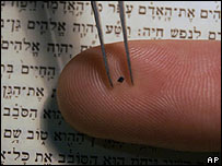 Израильским ученым удалось записать текст Библии на кристалле кремния размером меньше булавочной головки.