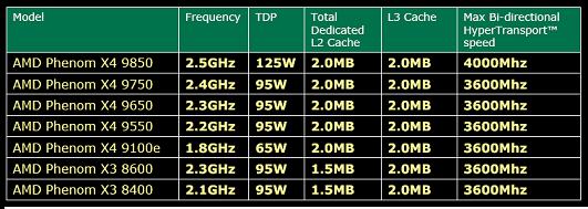 В четверг AMD выпустит 2,4-ГГц и 2,5-ГГц модели Phenom. Сегодня самый быстродействующий процессор компании работает с тактовой частотой 2,3 ГГц. Старшая модель, 9850, будет «открытой», так что энтузиасты смогут попытаться «разгонять» свои системы.